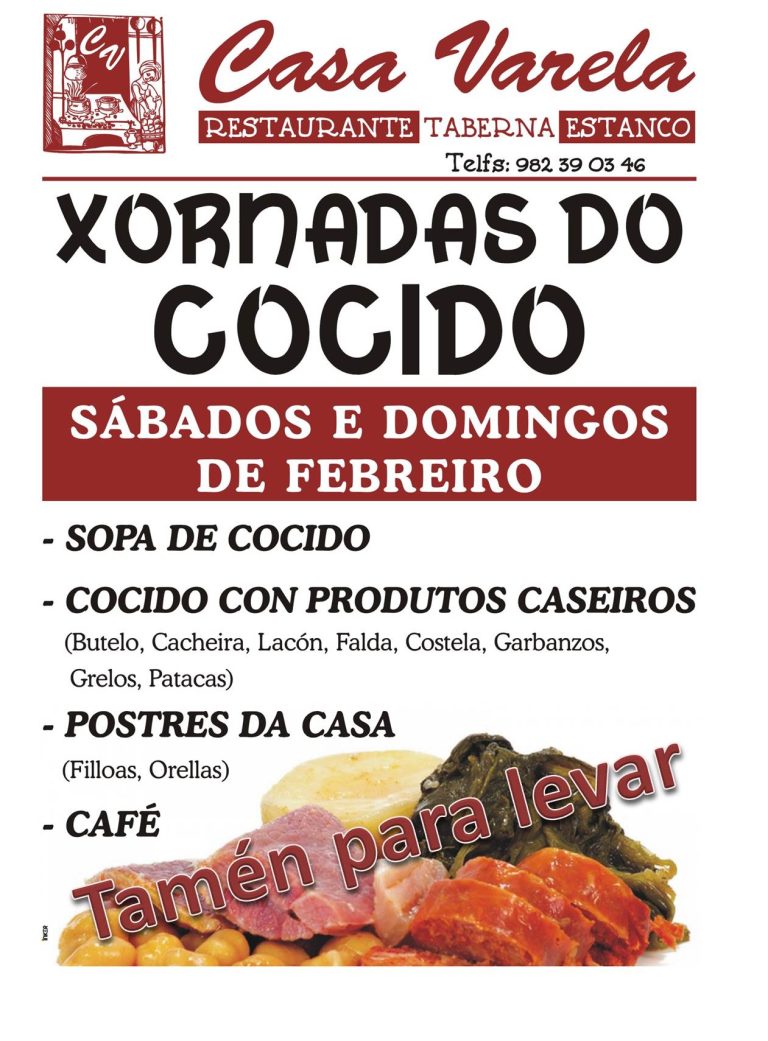 Se buscas un lugar para comer un cocido en Lugo, un auténtico cocido con toda a tradición, en Casa Varela podes facelo durante todas as fins de semana do mes de febreiro, ou calqueira outro día se nos avisas con 3 días de antelación. O noso restaurante temos o recoñecemento de ser unha das mellores opcións para comer cocido en Lugo. Este recoñecemento vén dado pola calidade de cada ingrediente, o certo é que todas as materias primas que utilizamos son propias ou de produtores e distribuidores da zona. En Casa Varela coidamos cada detalle para poder ofrecer aos seus comensais unha experiencia especial. O ambiente cálido e familiar e a cociña tradicional da zona son as claves do noso restaurante.