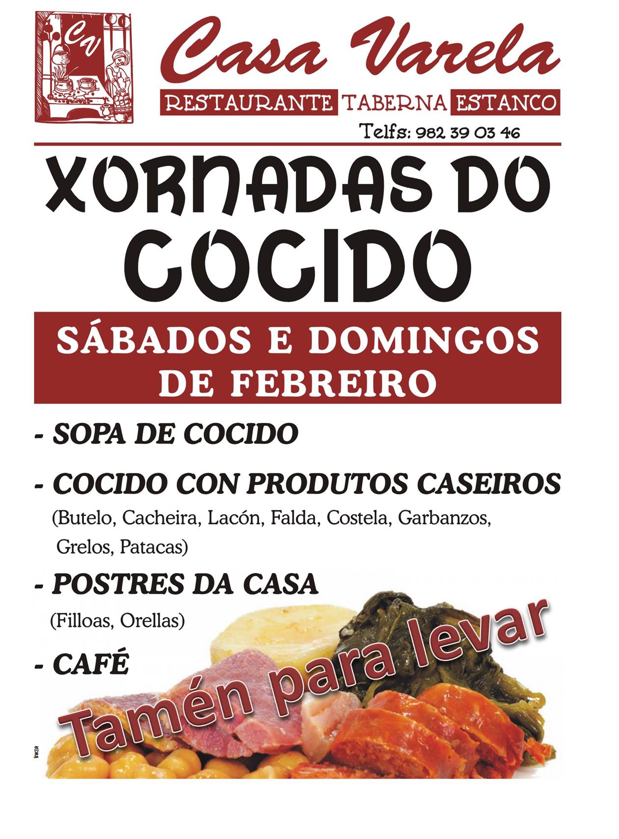 Prefires comelo na casa? Este ano, como novidade, ofrecémosvos a posibilidade de que poidades recoller o voso cocido e desfrutalo con toda a familia.